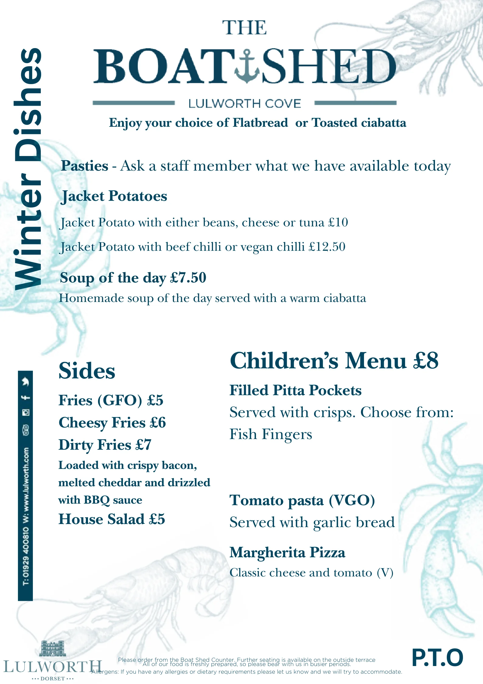 The Boat Shed Café, once a lock-up for those who took a living from the sea, takes its inspiration from the surrounding seascape. Nautically themed, it is the perfect location to soak up un-interrupted views of Lulworth Cove.